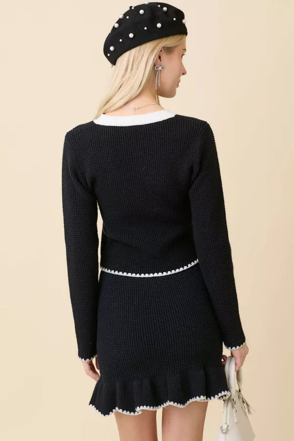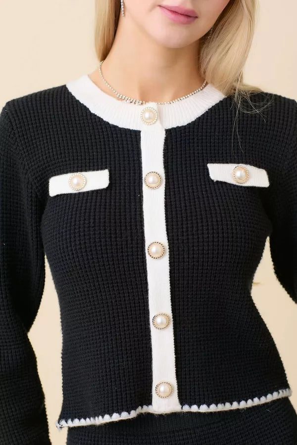 Fitted Round Neck Cardigan With Contrast Stitching Detail